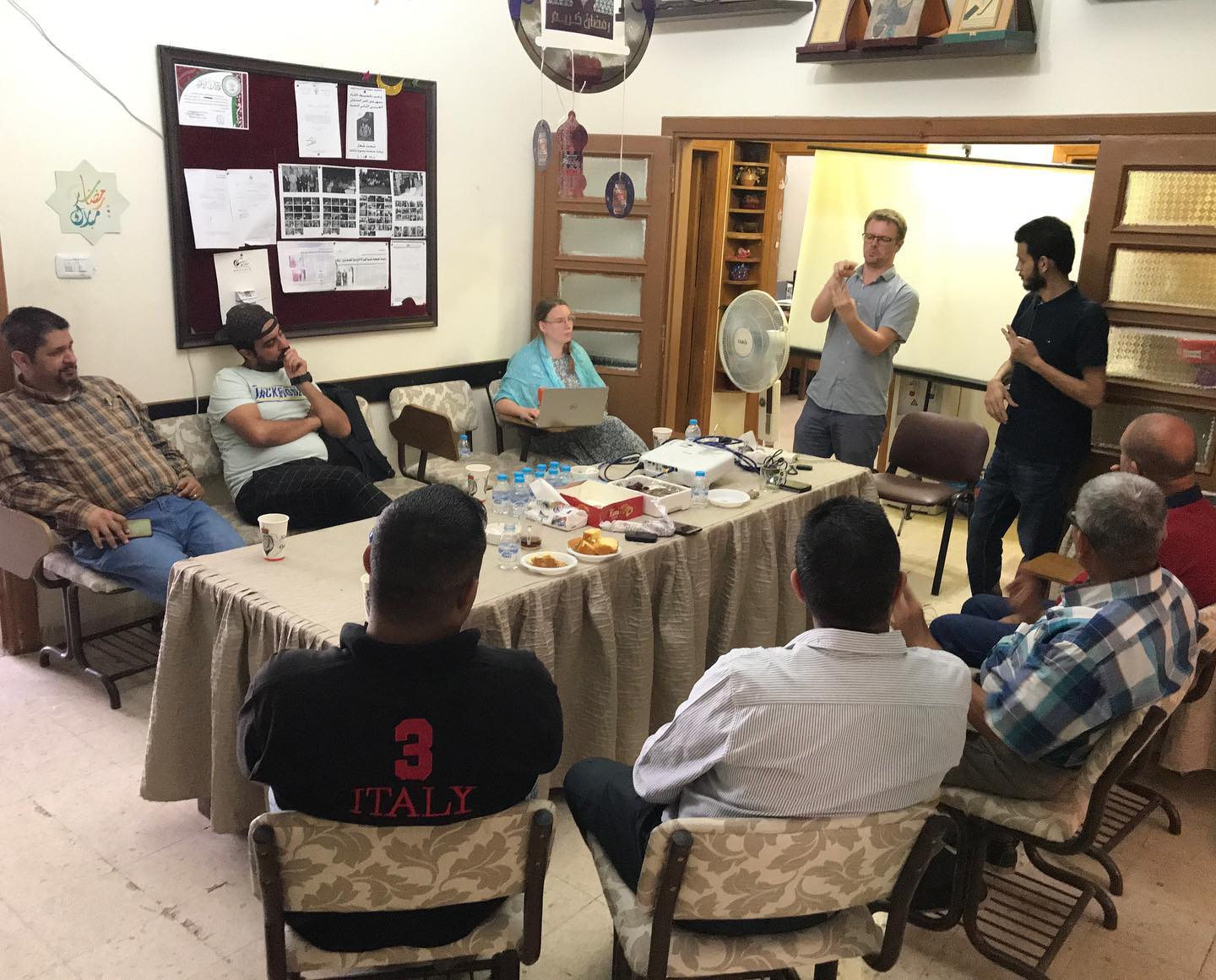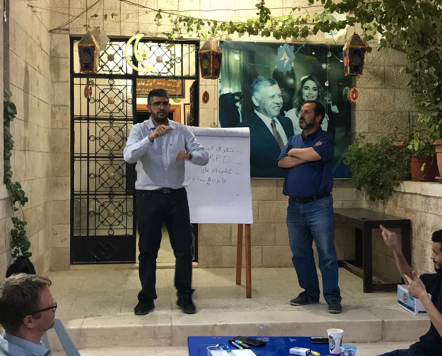يوم الثاني بحضور السيد كاسبر والسيدة فيرا وعدد من اعضاء الهيئة الادارية برئاسة السيد جمال عبد المحسن تم اجراء جولة ميدانية على عدد من المكاتب لغايات اعتماد مقر دائم للاتحاد ومن ثم عقد اجتماع لاعضاء الهيئة الادارية بحضور الضيوف من الاتحاد الدنماركي للصم الجهة المانحة للمشروع حيث جرى بحث اهم الخطط المستقبلية التي تهم اهداف الاتحاد الاردني للصم